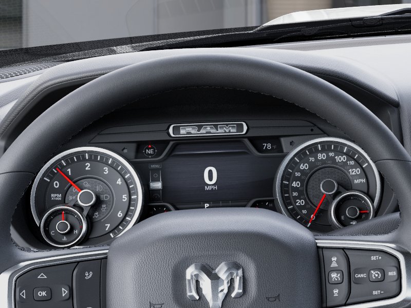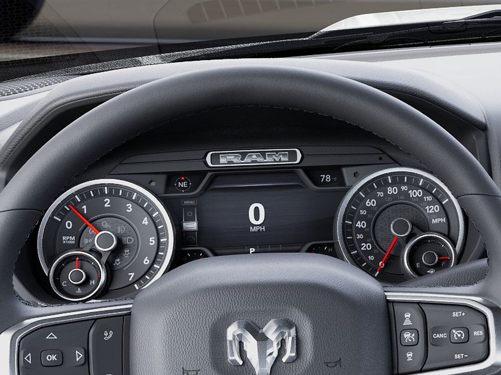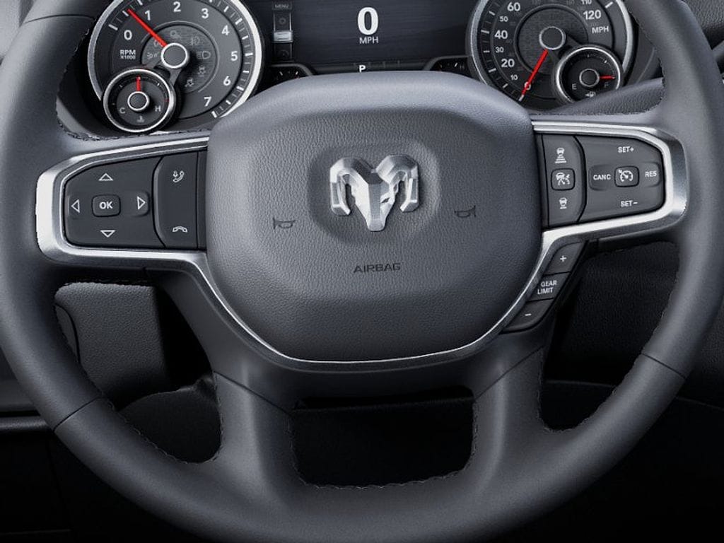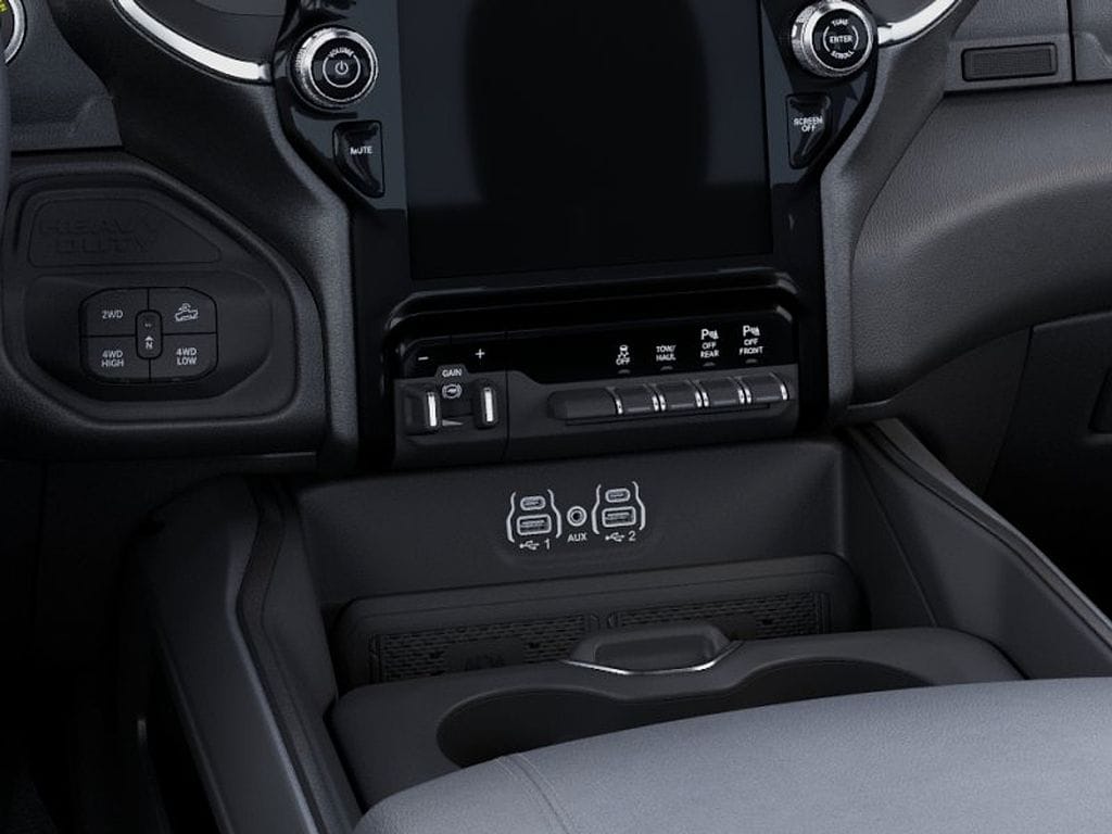 115-Volt Auxiliary Front Power Outlet, 115V Auxiliary Rear Power Outlet, 12" Touchscreen Display, 2 Way Rear Headrest Seat, 2nd Row in Floor Storage Bins, 4 Way Front Headrests, 400W Inverter, 4G LTE Wi-Fi Hot Spot, 9 Alpine Speakers with Subwoofer, Active Lane Management System, Adaptive Steering System, Air Conditioning ATC with Dual Zone Control, Alexa Built-in, Anti-Spin Differential Rear Axle, Apple CarPlay, Auto High Beam Headlamp Control, Auto Power-Folding Mirrors, Auto-Dimming Rear-View Mirror, Big Horn Level 2 Plus Equipment Group, Black Exterior Mirrors, Black Interior Accents, Blind Spot and Cross Path Detection, Body Color Grille-Surround, Bucket Seats, Center Stop Lamp with Cargo View Camera, Cluster 7.0" TFT Color Display, Connected Travel and Traffic Services, Connectivity - US/Canada, Dampened Tailgate, Digital Rearview Mirror, Disassociated Touchscreen Display, Drowsy Driver Detection, Dual Glove Boxes, Dual Wireless Charging Pad, Emergency Vehicle Alert System (EVAS), Exterior 115V AC Outlet, Exterior Mirrors Courtesy Lamps, Exterior Mirrors with Heating Element, Exterior Mirrors with Supplemental Signals, Foam Bottle Insert (door Trim Panel), Folding Flat Load Floor Storage, Footwell Courtesy Lamp, For Details, Visit DriveUconnect.com, For More Info, Call 800-643-2112, Forward and Reverse Utility Lights, Front Performance Tuned Shock Absorbers, Front Seat Back Map Pockets, Full Length Upgraded Floor Console, Global Telematics Box Module, Glove Box Lamp, Google Android Auto, GPS Antenna Input, GPS Navigation, HD Radio, Heated Front Seats, Heated Steering Wheel, Hill Descent Control, Integrated Voice Command with Bluetooth, LED Bed Lighting, LED Tail Lamps, Locking Lower Glove Box, Luxury Steering Wheel, Manual Adjust 4-Way Front Passenger Seat, Media Hub with 2 Charge Only USBs, Mirror Running Lights, MOPAR Deployable Bed Step, MOPAR Spray in Bedliner, MOPAR Trailer Camera Wiring with No Camera, Off Road Package, Off-Road Info Pages, Painted Front Bumper, Painted Rear Bumper, Power 2-Way Driver Lumbar Adjust, Power Adjust 8-Way Driver Seat, Power Adjust Mirrors, Power Adjustable Pedals, Power Heated Folding Telescopic Mirrors, Power Telescoping Mirrors, Power-Adjustable Convex Aux Mirrors, Premium Cloth Bucket Seats, Quick Order Package 2UZ Big Horn, Radio: Uconnect 5 Navigation with 12.0" Display, Rain Sensitive Windshield Wipers, Rear 60/40 Folding Seat, Rear Dome with on/Off Switch Lamp, Rear Performance Tuned Shock Absorbers, Rear Power Sliding Window, Red Tail Lamp Bezels, Remote Start System, Selectable Tire Fill Alert, SiriusXM Radio Service, SiriusXM with 360L, Sport Appearance Package, Sport Decal, Steering Wheel Mounted Audio Controls, Sun Visors with Illuminated Vanity Mirrors, Surround View Camera System, Tow-Mode Camera (Wired), Tow-Mode Digital Rearview Mirror Package, Traffic Sign Recognition, Trailer Reverse Guidance, Trailer Tire Pressure Monitoring System, Trailer Tow Pages, Universal Garage Door Opener.